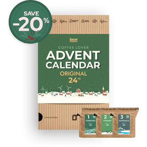 The primary differences between the Coffee Advent Calendars lie in the design of the outer packaging and brewer labels, as well as the quantity of coffee provided. Both calendars offer the same coffee selection, but the Coffeebrewer version includes 21g of pre-ground specialty coffee, whereas the Coffee Bean Taster Pack contains 50g of specialty coffee beans.